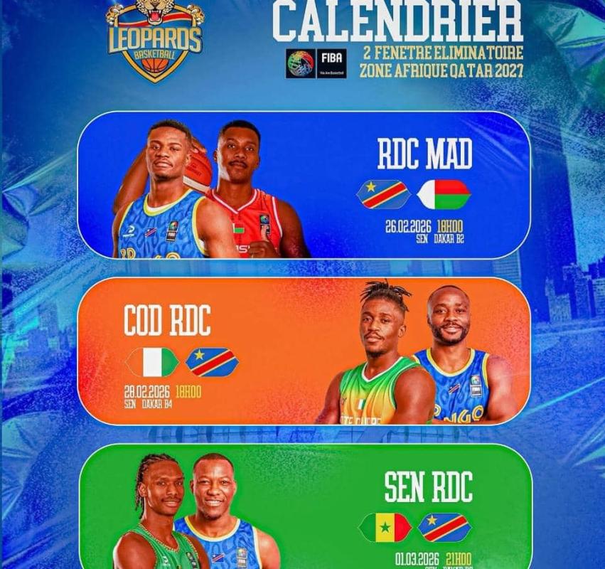 Les Léopards seniors messieurs de basketball s’envoleront pour la Catalogne du 13 au 23 février 2026, dans le cadre de la préparation de la deuxième fenêtre des éliminatoires de la Coupe du monde FIBA 2027 – Zone Afrique, prévue à Dakar du 26 février au 1ᵉʳ mars. Les Congolais évolueront dans un groupe relevé composé de la Côte d’Ivoire, du Sénégal et de Madagascar.