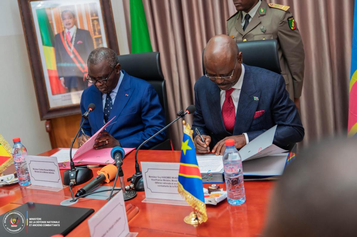 La République démocratique du Congo et la République du Congo ont renforcé leur coopération militaire. Les ministres de la Défense des deux pays, Guy Kabombo et Charles Richard Mondjo, ont signé, mercredi, un accord de collaboration pour un partenariat plus opérationnel et durable en matière de défense et sécurité.