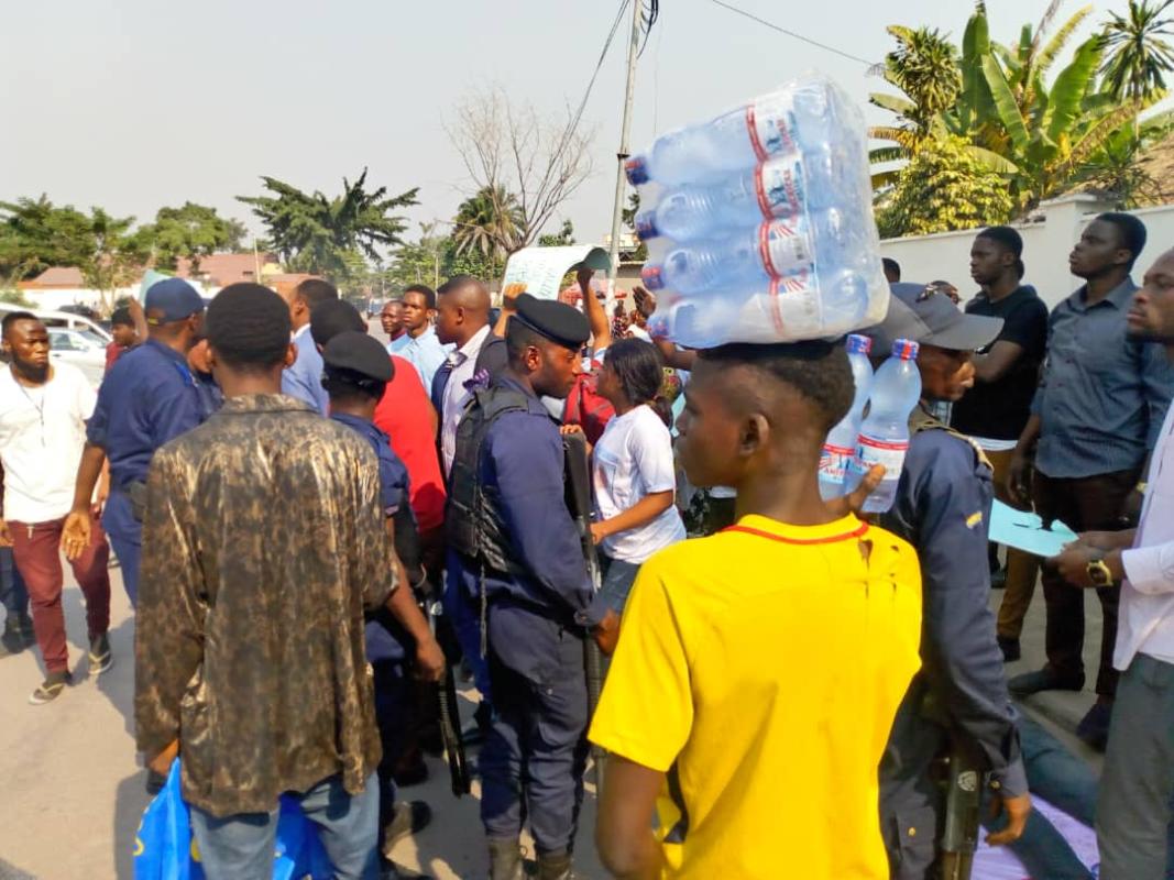 Accompagnés du député national invalidé à Mont-Amba Daniel Mbau, ces jeunes ont amené un lit et de la sonorisation pour amplifier le son d'une musique dite ''engagée'' afin de faire passer un message à l'endroit des juges de la Cour constitutionnelle.