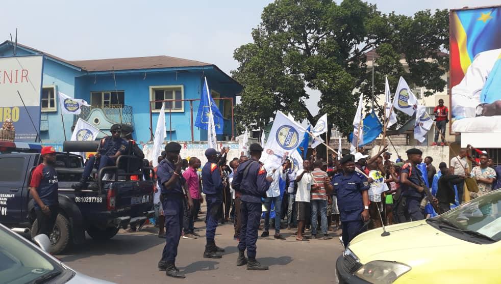Les éléments de la Police demandent aux militants du MLC de manifester à l'intérieur du siège de leur parti.