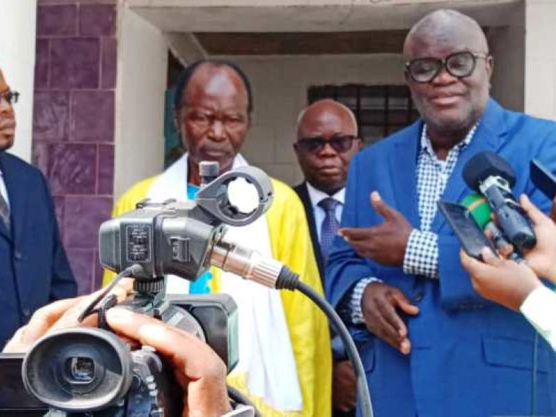 Devant la presse, Vuemba parle d'une visite de réconfort à celui qui vivait en clandestinité depuis plus de deux ans après son évasion de la prison centrale de Makala à Kinshasa.
