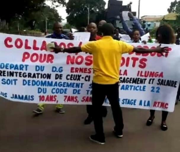 Ce lundi 04 février 2019, des agents et collaborateurs de la Radio Télévision Nationale Congolaise, RTNC, ont manifesté aux alentours du siège de l'Union Africaine à Kinshasa où réside actuellement le chef de l'État Félix Tshisekedi, pour exiger entre-autre leur réintégration au sein de l'entreprise, le paiement de leurs arriérés de salaire ou prime ainsi que le départ du Directeur Général Ernest Kabila.