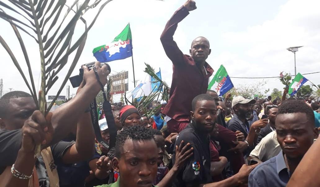 "Safu ye wana, Safu ye wana" entendez "Voici Daniel Safu", ont scandé les militants.