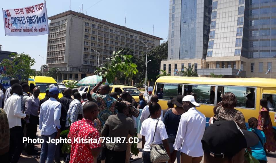 Quelques agents du ministère de l'Enseignement Technique et Formation Professionnelle, "ETP", ont manifesté ce mercredi 5 décembre 2018 devant l'Hôtel du Gouvernement à Gombe dans la ville de Kinshasa.